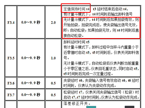 定值保持时间和超差检测时间。(适无斗秤)